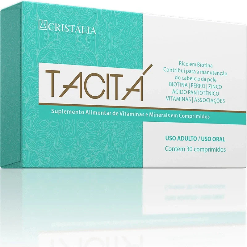 O Suplemento Alimentar de Vitaminas e Minerais Tacitá 30 Comprimidos contribui para a manutenção do cabelo e da pele.